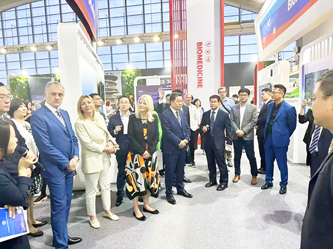 5月21日,塞爾維亞第66屆國際工藝和技術(shù)成果博覽會在貝爾格萊德博覽館隆重開幕,來自人工智能、生物醫(yī)藥等領(lǐng)域的22家中國科創(chuàng)代表企業(yè)表現(xiàn)搶眼,為中國科創(chuàng)力量增添亮色。塞爾維亞國民議會議長布爾納比奇,科學(xué)、技術(shù)發(fā)展和創(chuàng)新部長貝戈維奇,信息和電信部長里斯蒂奇,中國科學(xué)技術(shù)部副部長陳家昌等出席開幕式并致辭