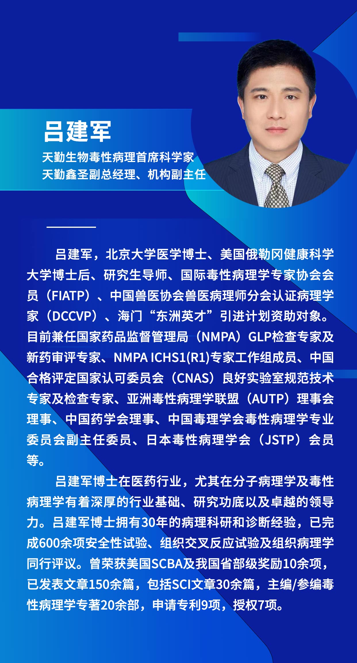 天勤生物任命呂建軍博士為公司毒性病理首席科學家,天勤鑫圣副總經(jīng)理、機構(gòu)副主任