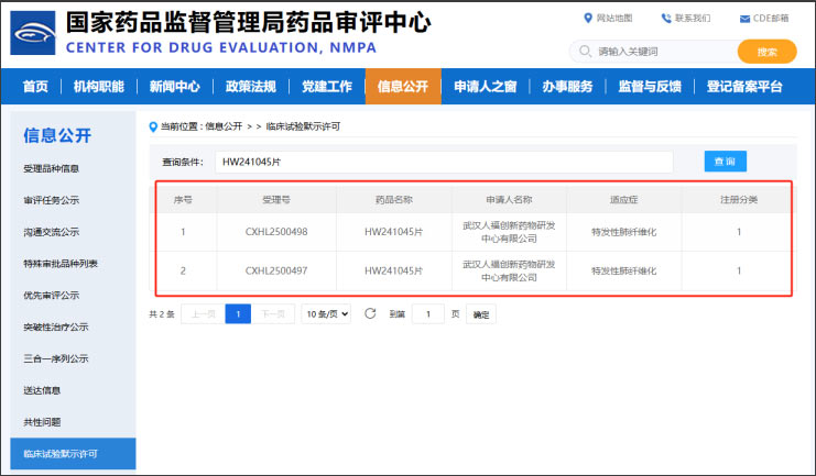 近日,國(guó)家藥品監(jiān)督管理局藥品審評(píng)中心(CDE)官網(wǎng)公示,人福醫(yī)藥集團(tuán)申報(bào)的1類創(chuàng)新藥HW241045片正式獲得國(guó)家藥品監(jiān)督管理局頒發(fā)的《藥物臨床試驗(yàn)批準(zhǔn)通知書(shū)》,擬用于治療特發(fā)性肺纖維化(IPF)。在這一重大進(jìn)展背后,天勤生物提供的全方位毒理學(xué)研究支持,為該項(xiàng)目獲批按下"加速鍵"。